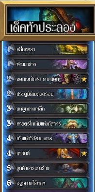 สำหรับ Deck ของชาแมนจะเป็นการเค้าเตอร์ Deck ม้าอมตะของวอร์ล็อค แต่ก็พอสู้กับ Deck อื่นได้ ซึ่งทั้งสอง Deck นี้มีอัตราการชนะที่สูงจึงสามารถปั้มเงินได้ถึงวันละ 100 Gold ได้เลย นับว่าเป็นโหมดท้าประลองที่คุ้มค่าแก่การเล่นมากสำหรับรอบนี้ ส่วนใครที่มีการ์ดไม่ครบก็ปรับเปลี่ยนเอาตามสะดวกครับ สำหรับวันนี้ขอตัวเก็บตังรอแพคใหม่ก่อนจ้า