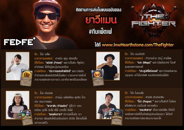เดินทางสร้างความสนุกกันมาถึงตอนที่ 2 กันแล้วสำหรับแคมเปญสุดยิ่งใหญ่ Hearthstone The Fighter กับภารกิจจับ 2 แก๊งดัง “เฟ็ดเฟ่ vs. เสือร้องไห้”มาปะทะความเกรียน ความฮา ปั้นมือใหม่ให้เป็นมือโปร หลังจากที่ทีมเฟ็ดเฟ่ได้เปิดตัวลูกศิษย์เป็น หนุ่มสุดกวน สไตล์ภาระตะ “ยาวีแมน” และทางฝั่งทีมเสือร้องไห้ก็ไม่น้อยหน้าส่งสาวสวยสุดฮาแดนกิมจิ “จียอน” งานนี้เรามาดูการเปิดตำราการสอน Hearthstone ของแต่ละทีมกัน