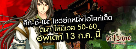 13 กรกฎาคม นี้ วันแห่งการอัพเดทความเก๋าโชว์สเต็ปเกมส์ออนไลน์ KSO คิทซึเนะ เริ่มจากการอัพเดทโหมใหญ่กับ แผนที่ใหม่ที่เปิดให้เวลกันยาวตั้งแต่เลเวล 46-60 มาโหดกันต่อกับการอัพเดทรวมพลคนเป็น 10 เข้าลุยดัน Evil-SevenStar, True-BlackWind ที่เดิมเข้าเป็นตี้ได้เพียง 5 คน มาคราวนี้พร้อมลุยกันเลยทีเดียว 10 คน