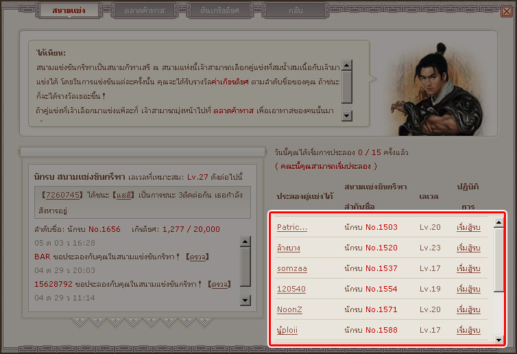 เมื่อเราเข้าสู่สนามแข่งแล้วให้เพื่อนๆ มองหาผู้เล่นที่มีเลเวลมากกว่า 20 ขึ้นไปแล้วให้เราท้าสู้รบกับคนที่เราต้องการจะจับเขามาเป็นทาสเราเลย โดยเลือกที่คำสั่ง “เริ่มสู้รบ” เพื่อนๆ ต้องสู้กับคนนั้นจนสามารถเอาชนะได้