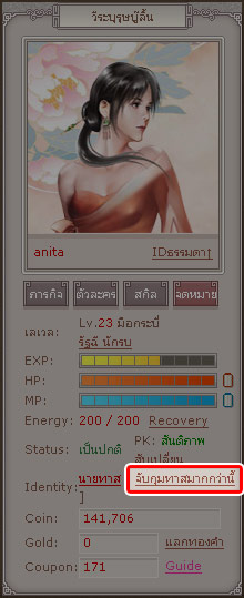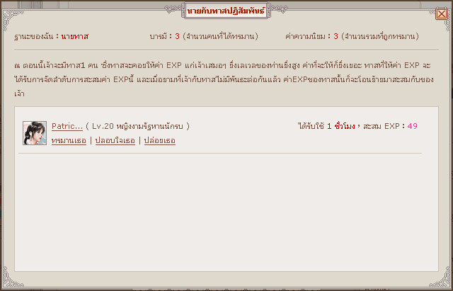 เมื่อเราเป็นเจ้าของทาสแล้วเราก็ต้องมีปฏิสัมพันธ์ระหว่างทาสและตัวเจ้าของด้วย ซึ่งเพื่อนๆ สามารถเลือกที่คำสั่ง Identity ในหน้าตัวละครหลักของเราหรือที่คำสั่ง ทาสของฉันในตลาดค้าทาสได้เลย