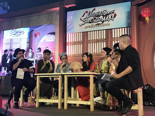 หลังจาก 2 พิธีกรอารมณ์ดีอย่าง โอ๊ต-ปราโมทย์ ปาทาน และ อาร์ต-มารุต ชื่นชมบูรณ์ กล่าวทักทายผู้เข้าร่วมงาน และ สื่อมวลชน อย่างสนุกสนานเป็นที่เรียบร้อย เราก็ได้พบกับทีม เสือร้องไห้ ที่ควงสาวสวยอย่าง น้องเบียร์ The Voice มาร่วมพูดคุยถึงเบื้องหลังการถ่ายทำคลิปโปรโมทให้กับเกมส์ Legend of Swordman หลังจากนั้นก็เป็นการแสดงการต่อสู้เพื่อจำลองบรรยากาศการต่อสู้ในเกมส์ให้เราได้เห็นกันอีกด้วย