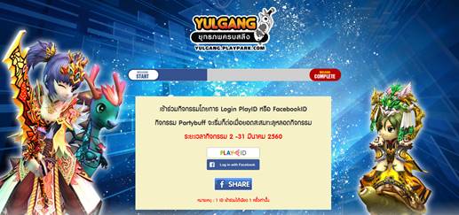 สำหรับใครที่อยากไปมันส์แบบไม่ต้องสมัคร ก็เลือกเข้าเกมโดยใช้ Facebook ID หรือ Play ID ของเกมในเครือ PLAYPARK ก็ได้ เพิ่มความสะดวกสบาย ง่ายกว่าเดิม เพื่อนๆ สามารถติดตามข่าวสารและกิจกรรมอื่นๆของเกมได้อีกเพิ่มเติมที่ yulgang.playpark.com แล้วอย่าลืมมาสมัครสนุกไปพร้อมๆ กันได้เลย!!