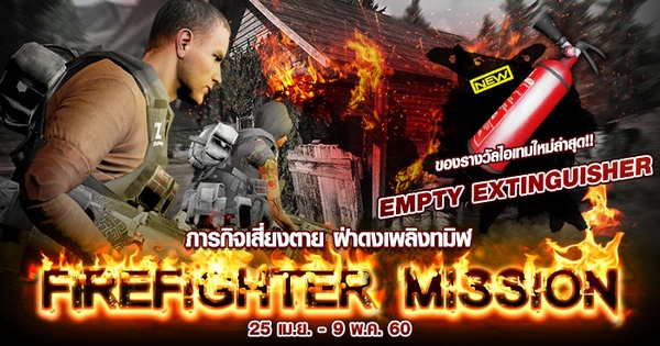 ต้อนรับวันแรงงานแห่งชาติ ทีมงาน Infestation Thailand ขอประกาศสารภารกิจด่วนถึงเหล่าผู้รอดชีวิตทุกคน ให้รีบเข้าช่วยเหลือ NPC ลาล่าที่ติดอยู่ในกองเพลิง ณ บ้านหลังหนึ่ง ในเมือง Frosty Pines Resort รัฐโคโลราโด หากผู้รอดชีวิตทำภารกิจที่ได้รับมอบหมายสำเร็จ! ทีมงานจะมอบของรางวัลอาวุธใหม่ล่าสุด!! “Empty Extinguisher” ที่มาพร้อมท่าตีรูปแบบพิเศษให้ ฟรีทันที!