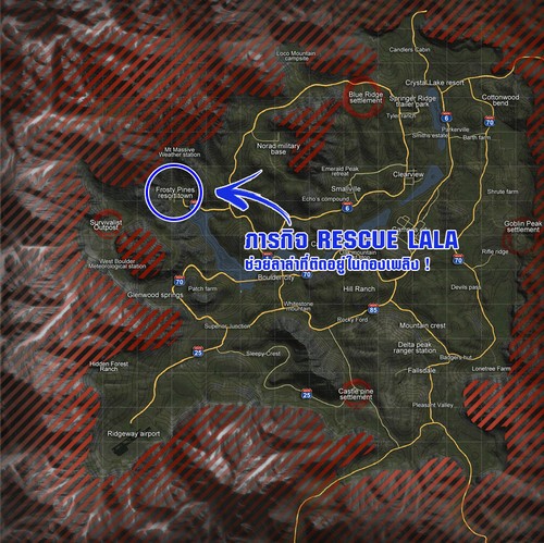 ภารกิจ “Rescue Lala” รีบไปช่วย NPC ลาล่าที่ติดอยู่ในกองเพลิง ณ.บ้านหลังหนึ่ง ในเมือง Frosty Pines Resort แผนที่ Colorado โดยต้องนำถังน้ำ Bucket of water จำนวน 1 ถัง ไปส่งที่ที่พิกัดดังกล่าว! หากทำสำเร็จทีมงานจะมอบของรางวัลอาวุธใหม่ล่าสุด!! “Empty Extinguisher” ที่มาพร้อมท่าตีรูปแบบพิเศษ 1 ea พร้อมกับค่า XP 5,000 แต้ม!! ฟรีทันที