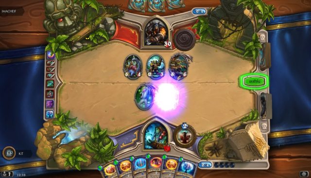 วิธีเล่น : สลับเลือกเวทย์มนต์และมินเนี่ยนที่ค่าร่ายไม่เยอะมาก แต่สามารถสร้างความเสียหายให้มินเนี่ยนเอาไว้คุมบอร์ดได้ดีในช่วงต้นเกม พอเริ่มท้ายเกมค่อยสะสมมินเนี่ยนตัวใหญ่ๆไว้