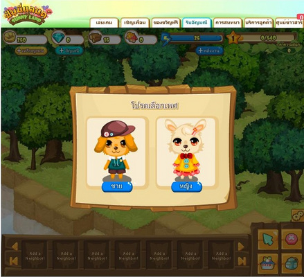 เมื่อเข้าเกมส์มาแล้ว ระบบจะให้เราเลือกสวมบทบาทว่าอยากจะเป็นตัวละครผู้ชายหรือผู้หญิง เลือกได้ตามใจของเพื่อนๆ เลย
