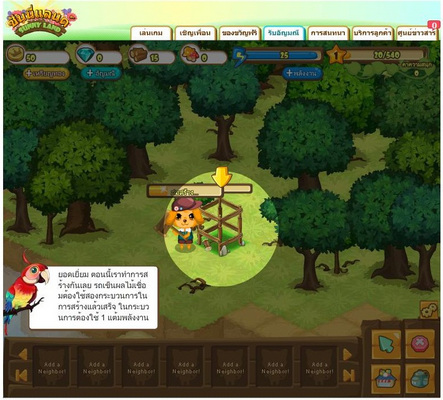 จากนั้นระบบก็จะพาเพื่อนๆ ไปรู้จักกับรูปแบบของเกมส์ซันนี่แลนด์ ให้เพื่อนๆ เลือกทำตามคำแนะนำได้เลย ซึ่งจะมีทั้งการตัดไม้ การก่อสร้างสิ่งต่างๆ