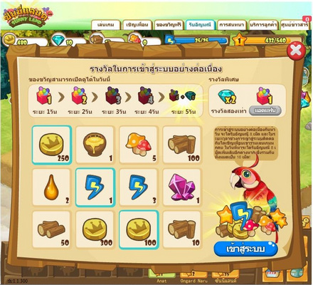 ภารกิจต้อนรับการเปิดให้บริการเกมส์ซันนี่แลนด์ คือจะมีโบนัสให้เพื่อนๆ ถึง 3 ชั้นด้วยกัน ซึ่งจะได้รับเหรียญ อัญมณี มูลค่ากว่า 90 บาทเลยทีเดียว