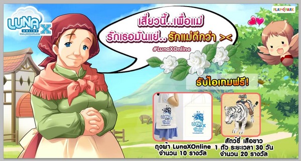 Luna X Online ตำนาน แห่งเกมสุดแบ๊ว ชวนเพื่อนๆ สายแบ๊วทุกคนมาร่วมกิจกรรม เสี่ยวนี้ … เพื่อ “แม่” แค่เพื่อนๆ กด Like แฟนเพจ Playpark Luna X Online และเข้าไป Share โพสกิจกรรมนี้ โดยเปิดเป็นสาธารณะ และพิมพ์ “มุขเสี่ยวบอกรักแม่” ลงบนโพสที่แชร์ จากนั้น แคปภาพที่แชร์มาแปะใต้โพสกิจกรรม มุขไหนเสี่ยวยอดเยี่ยมลุ้นรับของรางวัลไปได้เลย!! กิจกรรมเริ่มแล้วตั้งแต่วันนี้ – 14 สิงหาคม 2560 รายละเอียดเพิ่มเติม(คลิกที่นี่)
