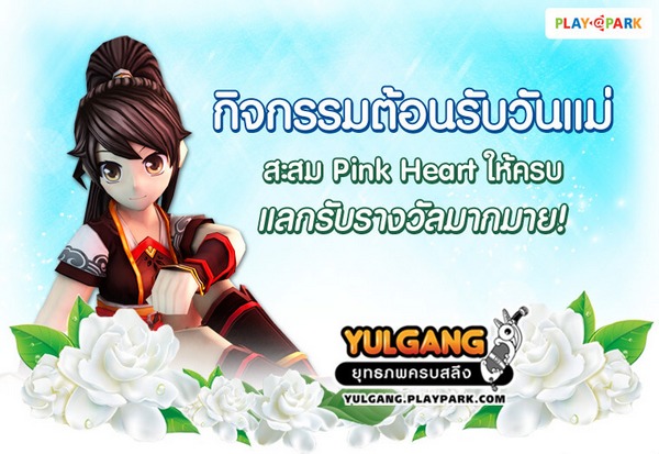 Yulgang ยุทธภพครบสลึง สุดยอดเกม MMO แนวจีนอันดับ 1 ในประเทศไทย ชวนเพื่อนๆ มาสะสม Pink Heart ให้ครบทั้ง 3 ชิ้น ตามเควสที่ได้รับ (เควส ความรักของแม่) แล้วนำมาแลกรับของรางวัลไปได้เลย!! เข้าร่วมกิจกรรมได้แล้วตั้งแต่วันนี้ – 17 สิงหาคม 2560 รายละเอียดเพิ่มเติม(คลิกที่นี่)