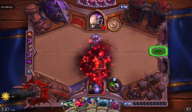 เรียกได้ว่าเป็นฮีโร่ที่ดักเดธไนท์คลาสอื่นเลย รอให้ฝั่งนู้นลงมาเยอะๆแล้วบอมด้วยใบนี้ นอกจากนี้ยังคอมโบกับการ์ดราชาผู้ถูกผนึก ทำให้สามารถใช้ฮีโร่พาวเวอร์ได้ไม่เสียมานา ทำให้ยิงได้ทุกๆครั้งที่ร่ายการ์ด เทรินนึงร่ายซัก 5 ใบ จัดเต็มๆ 12 damage! นับว่าน่ากลัวทีเดียว