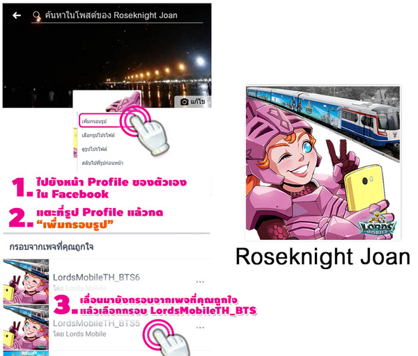 2.1) เปลี่ยนรูปโปรไฟล์ของคุณ โดยใช้กรอบรูป Lords Mobile_BTS (สามารถดูตัวอย่างได้จากคอมเม้นท์ใต้กิจกรรม)