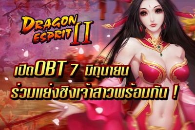เกม Dragon Esprit 2 เกมใหม่ล่าสุดจากบริษัท webgame พร้อมแล้วที่จะเปิด OBT ให้ผู้เล่นได้มามันส์กันในวันที่ 7 มิถุนายน 2556 นี้ ในช่วงเวลาที่เปิด CBT ที่ผ่านมานั่นได้รับกระแสตอบรับกลับมาอย่างดีเยี่ยม มีผู้กล้าเข้ามาร่วมมันส์กันจนแน่นเซิร์ฟเวอร์และในช่วงเปิด OBT ทางเกม Dragon Esprit 2 ก็มีกิจกรรมน่าตื่นเต้น และสนุกเร้าใจให้เพื่อผู้เล่นได้มันส์กันเพียบ