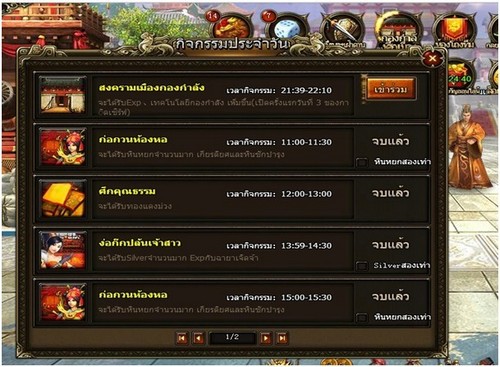 เวลากิจกรรม: ทุกวันเวลา 21:40 น. – 22:10 น.