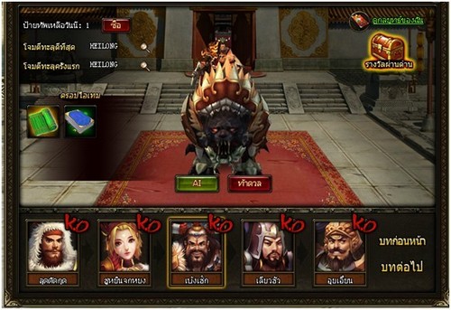 เพิ่มเติมของรางวัลแก่หัวหน้ากองกำลัง :สำหรับหัวหน้ากองกำลังที่ชนะในสงครามกองกำลังจะได้รับ สัตว์ขี่ กิเลนไฟ เพื่อเป็นสัญลักษณ์แสดงถึงการได้ครองเมืองและการได้ชัยชนะ