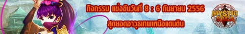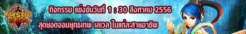 ผู้เล่นที่เป็นสุดยอดจอมยุทธ ด้านความสามารถสูงสุดตามอันดับ ภายในวันที่ 31 สิงหาคม 2556 รับรางวัลสุดเทพไปเลย ดังนี้
