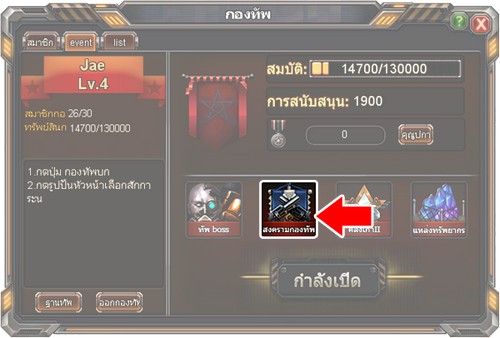 และสำหรับการปลดล็อคภารกิจนี้เพื่อนๆ จะต้องอยู่ในกองทัพ(กิลด์) ระดับ 2 ขึ้นไป รายละเอียดการเข้าร่วมสามารถติดตามได้ในคู่มือสำหรับมือใหม่นะจ๊ะ