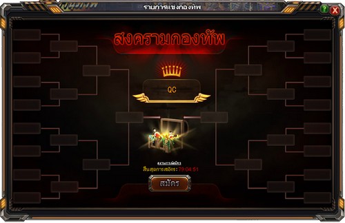 หลังจากเข้ามาที่ภารกิจ “สงครามกองทัพ” เรียบร้อยแล้ว จะพบกับตารางการจับคู่สายการแข่งขัน ซึ่งต้อง “ผู้บัญชาการ” หรือ “รองผู้บัญชาการ” จึงมีสิทธิ์กดปุ่ม “สมัคร” ลงทะเบียนเข้าร่วมการทำศึกสงครามครั้งนี้ได้เท่านั้น!!
