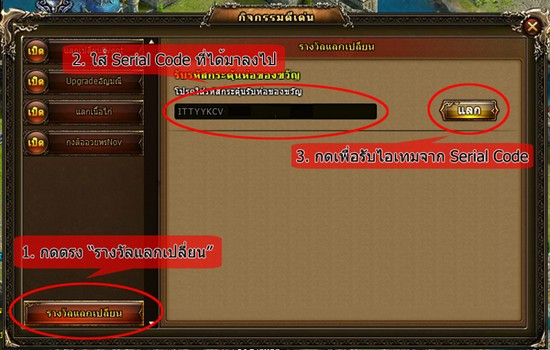 พอใส่ Serial Code เรียบร้อย แล้วกด “แลก” รอสักครู่ระบบจะส่งไอเทมให้