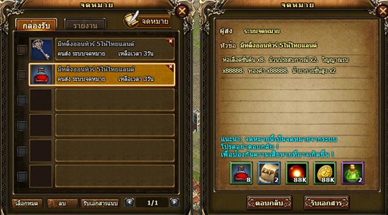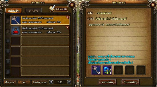ระบบส่งไอเทมมาทางจดหมาย เราจะต้องกด “รับเอกสาร” ซะก่อน และจดหมายมีหมดอายุนะ รีบรับซะก่อนจะหาย