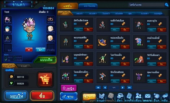 จากภาพทางด้านซ้ายเราจะเห็นตัวละครเรากับชุดเสื้อผ้าที่ใส่อยู่ในปัจจุบัน ส่วนทางด้านขวาจะเป็นไอเทมที่ขายอยู่ภายในร้าน ผู้เล่นสามารถหาซื้อชุดแฟชั่นสวยๆ และอุปกรณ์ต่างๆ ได้ที่นี่ โดยสามารถกดลองใส่ดูก่อนได้ว่าชอบหรือไม่จากนั้นค่อยตัดสินใจซื้อ