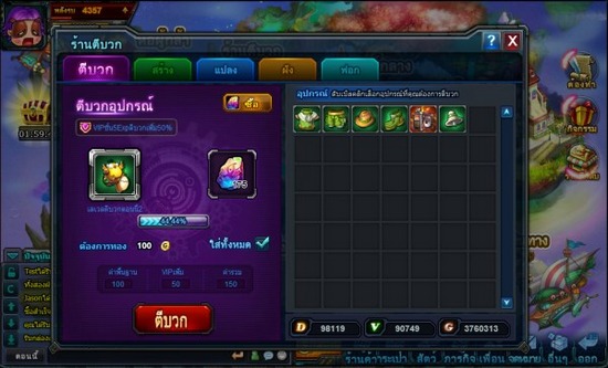 ตีบวก ตรงๆ ตามชื่อเลยคำสั่งนี้มีไว้เพื่ออัพเกรดเครื่องแต่งกาย และอาวุธ ซึ่งในการตีบวกนั้นจะต้องใช้ หินตีบวก และทองคำจำนวนหนึ่ง