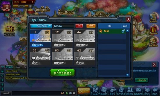 เมื่อเข้ามาจะเป็นห้องต่างๆ ให้เลือก สามารถคลิกเข้าไปร่วมต่อสู้ หรือสร้างห้องใหม่แล้วชวนเพื่อนๆ ในกมเข้ามาร่วมก็สามารถทำได้