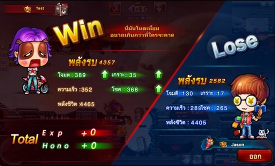 เมื่อจบเกม ตัดสินแพ้ชนะ บางครั้งค่าพลังของเราจะเพิ่มขึ้น ดูสิพลังโจมตีเพิ่มขึ้นด้วย
