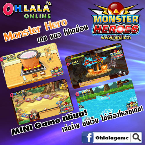 งานนี้ไม่ต้องดาวน์โหลดให้เสียเวลา เปิดบราวน์เซอร์มาแล้วเข้าเว็บ www.MH.in.th เท่านี้ก็สามารถเข้าเล่นเกมส์ Monster Heroes ได้แล้ว เพื่อนๆ สามารถติดตามรายละเอียดอื่นๆ ได้ที่ www.facebook.com/Ohlalagame
