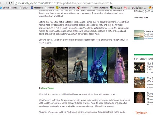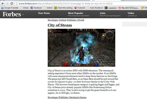อีกหนึ่งผลงานที่ได้รับการการันตีความน่าเชื่อถือ ความน่าเล่น ความน่าสนใจของเกม จากเว็บไซต์ mmorpg.com เว็บไซต์เกมแนว MMORPG อันดับ 1 ของโลก ได้จัดอันดับเกม City of Steam ติด 1 ใน 3 ของเกมน่าเล่นที่สุด!