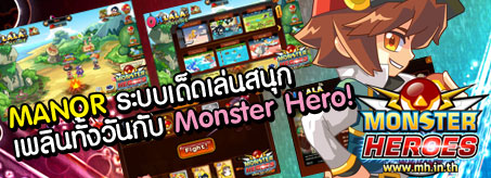 สำหรับผู้เล่นที่เคยสัมผัสแล้วคงจะรู้สึกสนุกไปกับตัวเกมอย่างแน่นอน เพราะนอกจากระบบเกมที่คุณคุ้นเคยกันเป็นอย่างดีอย่างการจับมอนสเตอร์มาเลี้ยงให้เก่งแล้ว ยังมีในส่วนของระบบอื่นๆ อีกมากมายที่จะทำให้เพื่อนๆ นั้นสนุกได้ตลอดเวลาที่อยู่ภายในเกม Monster Heroes งานนี้เพื่อนๆ ห้ามพลาดเลยกับช่วง Open Beta ที่รับรองว่าสนุกกว่าเดิมอย่างแน่นอน และเกมนี้เป็นเกมบนเว็บนะจ๊ะ ไม่ต้องเสียเวลาดาวน์โหลดเกม เพียงเข้าไปที่ www.MH.in.th ก็สามารถเล่นได้เลยจ้า