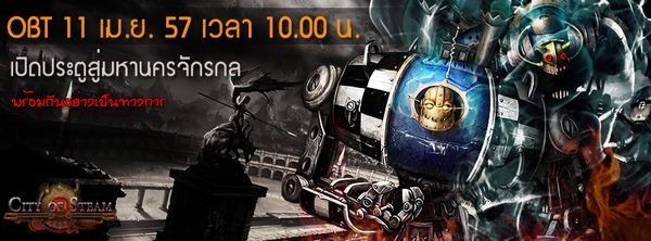 อ๊ะ! อ๊ะ! ความสนุกยังไม่หมดแค่นี้ เพราะเกมเว็บใหม่ CITY OF STEAM จะเปิด Open Beta อย่างเป็นทางการในวันที่ 11 เมษายน เวลา 10:00 น. พร้อมสนุกกับความมันส์ไร้ขีดจำกัดอย่างเต็มรูปแบบไปกับ OBT ที่สำคัญกิจกรรมจัดหนัก!! จัดเต็มแน่นอน!! แล้วเตรียมตัวมาสนุกกับ CITY OF STEAM ด้วยกันนะจ๊ะ!!