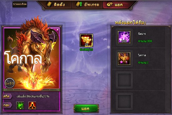 1.1 แยกบัตร Tal ต้องการใช้ก้อนทองจำนวนหนึ่ง (แยกบัตร Tal Lv.1 ไม่ต้องใช้ก้อนทอง)