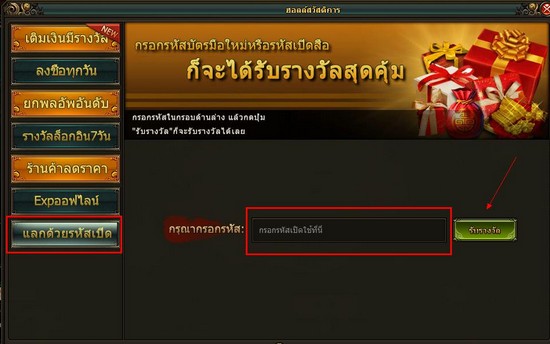 3. แล้วกรอก Item Code ลงช่อง และคลิก แลกรางวัล