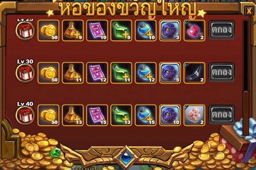 เมื่อเก็บเลเวลถึงตามที่กำหนดจะได้รับ Item พิเศษตามที่กำหนด