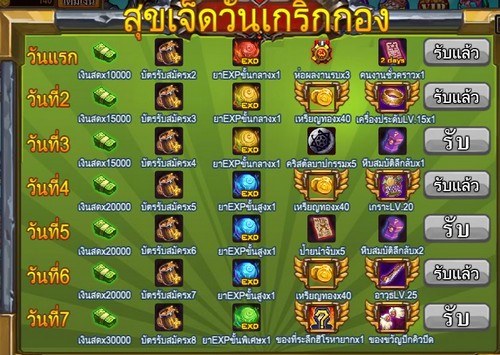ล็อกอินประจำวันได้รับของรางวัลตามที่กำหนด ยิ่งเล่นมากยิ่งได้มาก