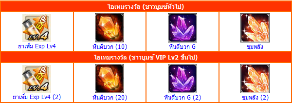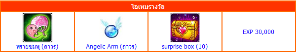 • ทีมงานจะทำการจัดส่งไอเทมรางวัลให้ภายใน 7 วัน หลังจบกิจกรรม
