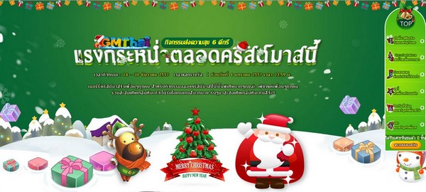 นอกจาก Chibi Warriors เปิด “ระบบปีก” ที่เป็นฟังก์ชั่นล่าสุดเพื่อฉลองวันคริสต์มาส วันที่ 24 ธ.ค. นี้ อีกอย่างหนึ่ง GMThai เตรียมกิจกรรมส่งความสุข 6 ดีกรี แรงกระหน่ำตลอดคริสต์มาสนี้ เมอร์รี่คริสต์มาสจ้าเพื่อนๆทุกคน สำหรับกิจกรรมฉลองคริสต์มาสปีนี้นั้นพิเศษมากๆเรยล่ะ เพียงแค่เพื่อนๆทุกคน ร่วมสะสมเศษเกล็ดหิมะก็จะได้รับไอเทมเกมส์มากมาย รีบๆมาสะสมเศษเกล็ดหิมะกันสิจ๊ะ!! กิจกรรมวันคริสต์มาสอีกมากมายคลิกที่ >>> http://www.gmthai.com/event/christmas2014/?activity_id=62