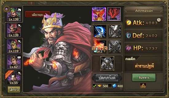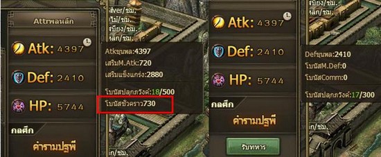 หนึ่ง. ปลุกภวังค์ขุนพลเมื่อผู้เล่นถึง Lv.121 จะได้รับฟังก์ชั่นปลุกภวังค์จากการศึกษาและเมื่อขุนพลมี Lv.120 จะปลุกภวังค์ได้ ในการปลุกภวังค์ขุนพลจะต้องใช้ Gold และเพชร ขุนพลที่ปลุกภวังค์แล้วจะได้รับสกิลสูงสุดของการปลุกภวังค์ ขุนพลที่ผ่านการปลุกภวังค์แล้วจะมีความสามารถด้านกลศึก การสยบทหาร กำลังทหาร การเป็นผู้นำ ฯลฯ เพิ่มขึ้น ขุนพที่ปลุกภวังค์แล้วจะใส่ชุดรบสีม่วง