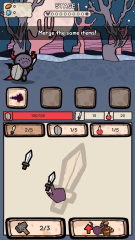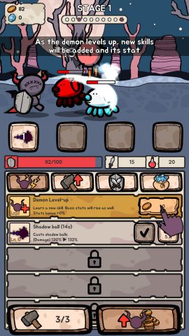 Demon King ผู้ปกครองนครแห่งปีศาจ ถูกลูกน้องคนสนิททรยศและถูกเนรเทศไปในดินแดนที่ไกลแสนไกล….เราจึงต้องลุกขึ้นมาทวงบังลังก์และตำแหน่งเขาคืนใน Demon RPG เนื่องด้วยความสามารถของเขา เขาสามารถอัญเชิญอุปกรณ์ขึ้นมาในกระเป๋าและผสมรวมกันเป็นอุปกรณ์ใหม่ได้ โดยการคลิกที่รูปค้อนเพื่อเป็นการเรียกอุปกรณ์ตั้งต้นขึ้นมา จากนั้นลากไปรวมกับอุปกรณ์ที่เหมือนกัน จะได้รับอุปกรณ์ชนิดใหม่ที่มีความแข็งแกร่งเพิ่มขึ้น