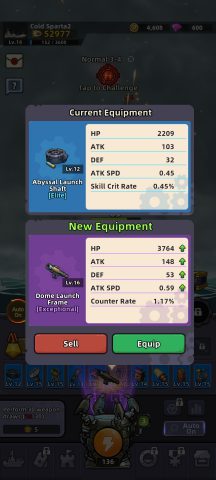 ตัวเกม Battleship Brawl เป็นแนว Idle -RPG แบบสุ่มกาชาเก็บเงิน-เก็บ EXP จริงๆแนวนี้เป็นแนวใหม่แต่กำลังได้รับความนิยมอยู่ในขณะนี้ ซึ่งก็คือเราสู้มอนสเตอร์หรือทำลายยานยนต์ข้าศึกเราจะไม่ได้ EXP กับเงิน หรือได้ก็ได้น้อยมาก โดยแนวนี้จะเน้นให้ผู้เล่นกดสุ่มอุปกรณ์ ถ้าอุปกรณ์นั้นยังไม่เคยติดตั้งหรือมีพลังสูงกว่าก็ติดตั้งแล้วจะได้พลังเพิ่ม แต่ถ้าซ้ำหรือพลังต่ำกว่าก็จะถูกขายและได้ เงินและ EXP อัตโนมัติ ดังนั้น…ถ้าอยากเพิ่ม LV เร็วๆ ได้เงินเยอะๆ ก็สุ่มเข้าไป…. และยิ่งไปกว่านั้นจะมีระบบสุ่ม Auto เพิ่มความสะดวกสบายอีกด้วย