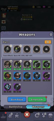การอัพเกรดของตัวเกม จะเป็นการ Enhance อาวุธและลูกเรือ โดยอาวุธและลูกเรือที่สุ่มซ้ำๆกันมาสามารถนำไป Enhance เพิ่มพลังได้