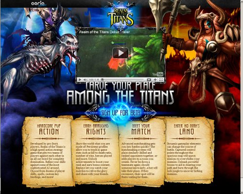 Aeria Games ได้เริ่มเปิดเว็บไซต์อย่างเป็นทางการให้ลงทะเบียนในช่วง Closed Beta ของเกมส์ที่มีแรงบันดาลใจจาก DotA นั่นก็คือ Realm of the Titans (ROTT) ซึ่งเปลี่ยนจากชื่อเกมส์เดิมในเวอร์ชันจีนคือ Tian Yi Jue โดยสามารถเยี่ยมชมเว็บไซต์ที่เพิ่งเปิดตัว และสมัครเข้าร่วมเพื่อจะได้มีโอกาสทดลองเล่นในช่วง CBT ครับ