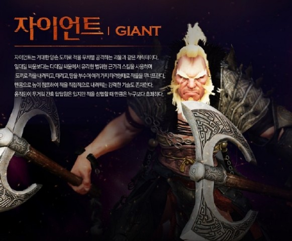 Giant เป็นเผ่าพันธุ์ที่เคลื่อนไหวช้าที่สุด มี HP และพลังป้องกันทางกายภาพสูง สามารถเป็นตัวแท็งค์ได้ ถือขวานทั้งสองมือเป็นอาวุธหลัก และส่วนใหญ่เน้นสกิลโจมตีหมู่