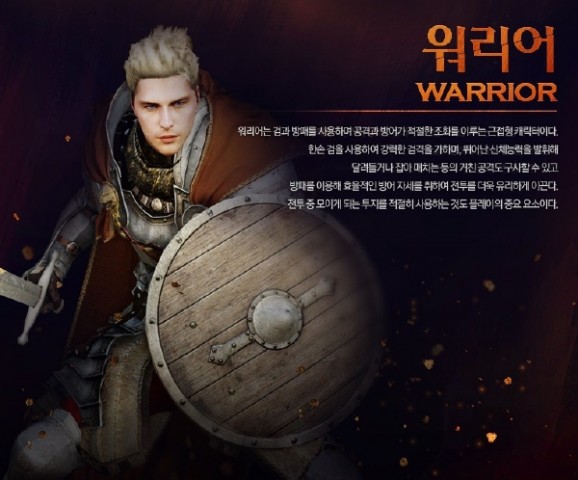 Warrior ถือดาบมือเดียวเป็นอาวุธหลักเพื่อใช้โจมตี และใช้โล่เพื่อป้องกันตัว ทำดาเมทได้ดีและมีความคล่องตัวปานกลาง สามารถใช้โล่และการเตะเป็นส่วนเสริมในการโจมตีได้