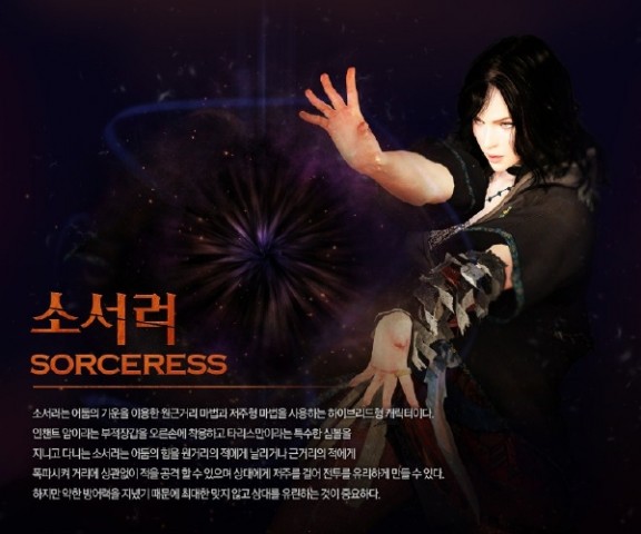 Sorceress เป็นอาชีพที่มีความว่องไวสูง พลังป้องกันต่ำ สกิลส่วนใหญ่จะทำให้ศัตรูหยุดอยู่กับที่ก่อนที่จะร่ายสกิลโจมตีแรงซัดตาม โดยมีทั้งสกิลเดี่ยวและสกิลหมู่ แต่อาวุธหลักของอาชีพนี้เป็นอาวุธระยะประชิด และต้องโจมตีระยะประชิดจึงจะทำดาเมทได้ดี สามารถยิงเวทย์โจมตีจากระยะไกลได้เหมือนกัน แต่จะทำดาเมทได้น้อย