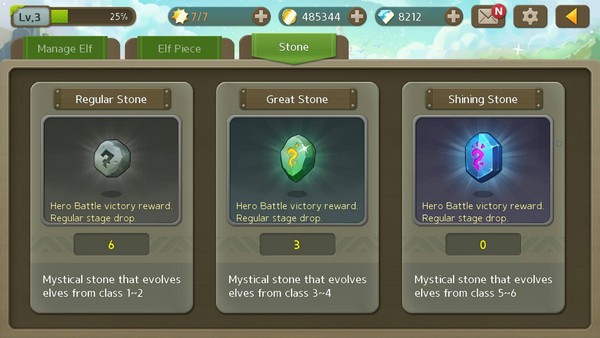 1. ระดับดาว (สามารถเพิ่มดาวได้ โดยกดตรง Evolve ใช้เอลฟ์และหินอัพเกรด)