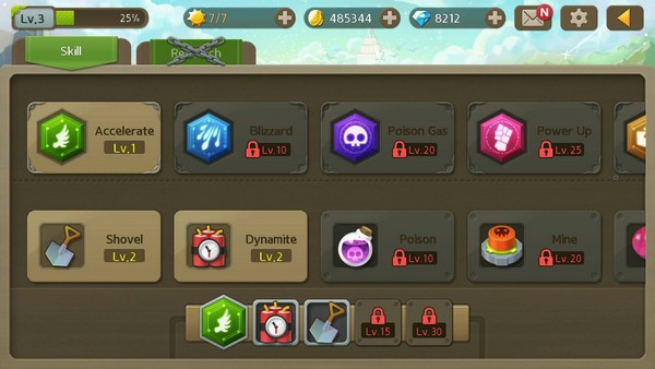 1. Shovel : พลั่วขุดหิน สำหรับถางทางให้เอลฟ์มีที่ยืนในสนามต่อสู้ (ยิ่งเลเวลสูงยิ่งใช้ได้บ่อยขึ้น)