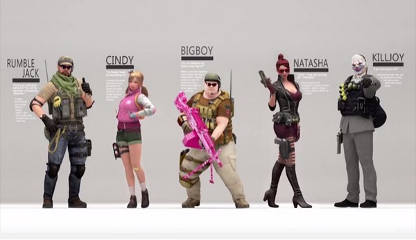ทางด้านตัวละครของเกมที่มีการเผยออกมานั้น จะมีทั้งหมด 11 ตัว ซึ่งมีอาชีพและความสามารถที่แตกต่างกัน ทั้งสายทหาร แนวน่ารัก นักฆ่า สวยเซ็กซี่ เป็นต้น ออกแนวๆ ไปคล้ายเกม Overwatch ที่มาแนวหลากหลายทางแฟชั่นมากกว่าเน้นสู้รบแบบทหาร 2 ฝั่ง และตามข่าวก็ยังมีการบอกว่าจะเตรียมพัฒนาเพิ่มขึ้นให้มากกว่า 11 ตัวอีกด้วย รวมไปถึงอาวุธและอุปกรณ์ที่แปลกตาก็เตรียมมาสร้างความตื่นเต้นให้กับคนเล่นเช่นกัน